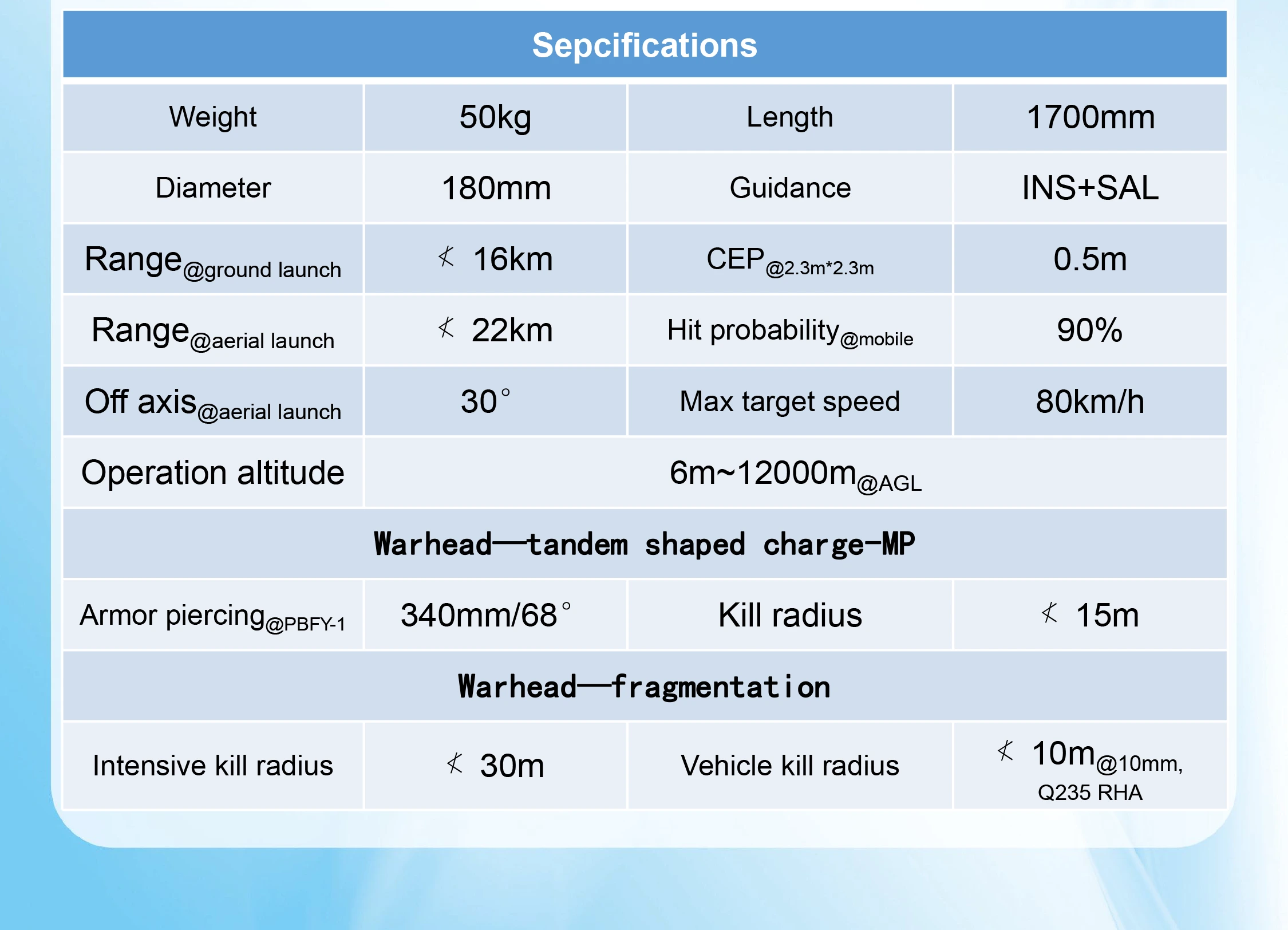 LD-16 is a 50kg class laser guided ASM for stationary or mobile ground target,
